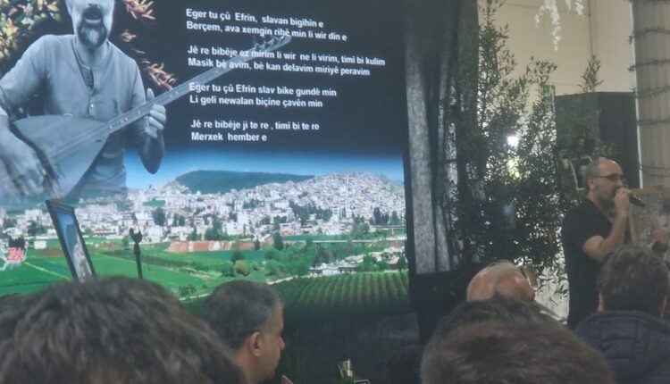 تبع ذلك كلمة من خال الفنان، السيد رمزي، الذي استذكر جوان ليس فقط كفنان، بل كإنسان حمل شغف الفن كرسالة وقضية. كما تحدث والد الفنان، السيد عصمت، من خلال تسجيل فيديو من مدينة عفرين، بكلمات تقطر ألمًا وفخرًا، مستعيدًا الذكريات التي جمعتهم، مؤكدًا أن ابنه لم يكن مجرد مغنٍّ، بل صوتٌ حمل هموم وطنٍ بأكمله.