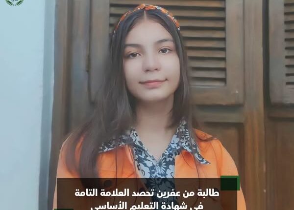 طالبة من عفرين تحصد العلامة التامة في شهادة التعليم الأساسي