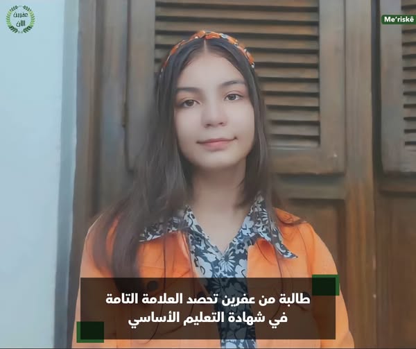حصلت الطالبة شيراف آزاد طوبال حمو، من قرية معرسكة – Me’riskê التابعة لمدينة عفرين، على العلامة التامة في شهادة التعليم الأساسي (الصف التاسع)، لتكون بذلك ثاني طالبة من منطقة عفرين تحقق العلامة الكاملة هذا العام، ومن بين الأوائل على مستوى سوريا.